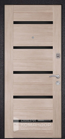 Входная дверь для квартиры с характером: снаружи — тёмное порошковое покрытие с молотковой фактурой, которое не бликует, маскирует мелкие следы касаний и спокойно переносит влажную уборку подъезда; внутри — МДФ в оттенке бежевого клёна с аккуратной фрезеровкой, освежающей узкий коридор и подружится и с светлой, и с контрастной отделкой. Полотно сидит ровно, плотный притвор и контур уплотнения приглушают шумы с лестничной площадки и не дают сквознякам гулять по дому. Разнесённые замки управляют стальными ригелями по кромке, глазок на удобной высоте — видно, кто пришёл. Хромированная фурнитура добавляет спокойного блеска, а усиленные петли работают мягко, без люфтов. Практично, строго и по-домашнему тёпло внутри.